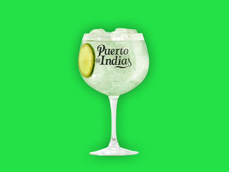 Añadir hielo en la copa hasta completarla, enfriarla y colar el agua restante. Añadir la ginebra Puerto de Indias Sweet Melon. Verter suavemente el refresco y remover para integrarlos. Finalmente decorar con una rodaja de lima.